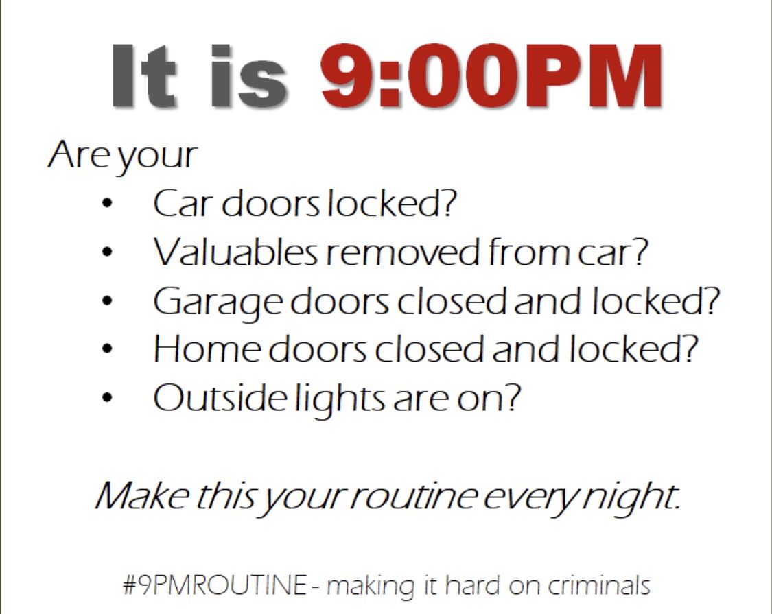 Keep your home, car, and valuables safe! #9PMROUTINE