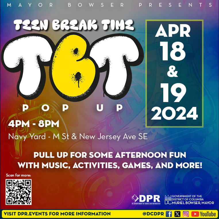 POP UP EVENT ALERT: Teen Break Time Pop Ups: TONIGHT, 4/18 & Fri, 4/19, 4-8p // Navy Yard - M St & New Jersey Ave SE